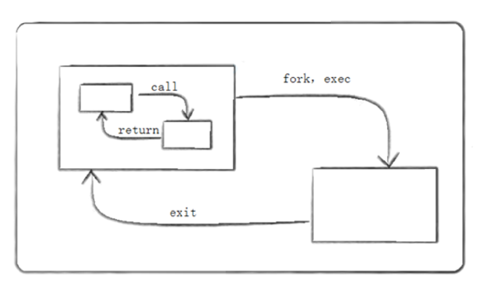 一个C程序可以fork/exec另一个程序,并传给它一些参数。这个被调用的程序执行一定的操作,然后通过exit(n)来返回值。调用它的进程可以通过wait(&ret)来获取exit的返回值。