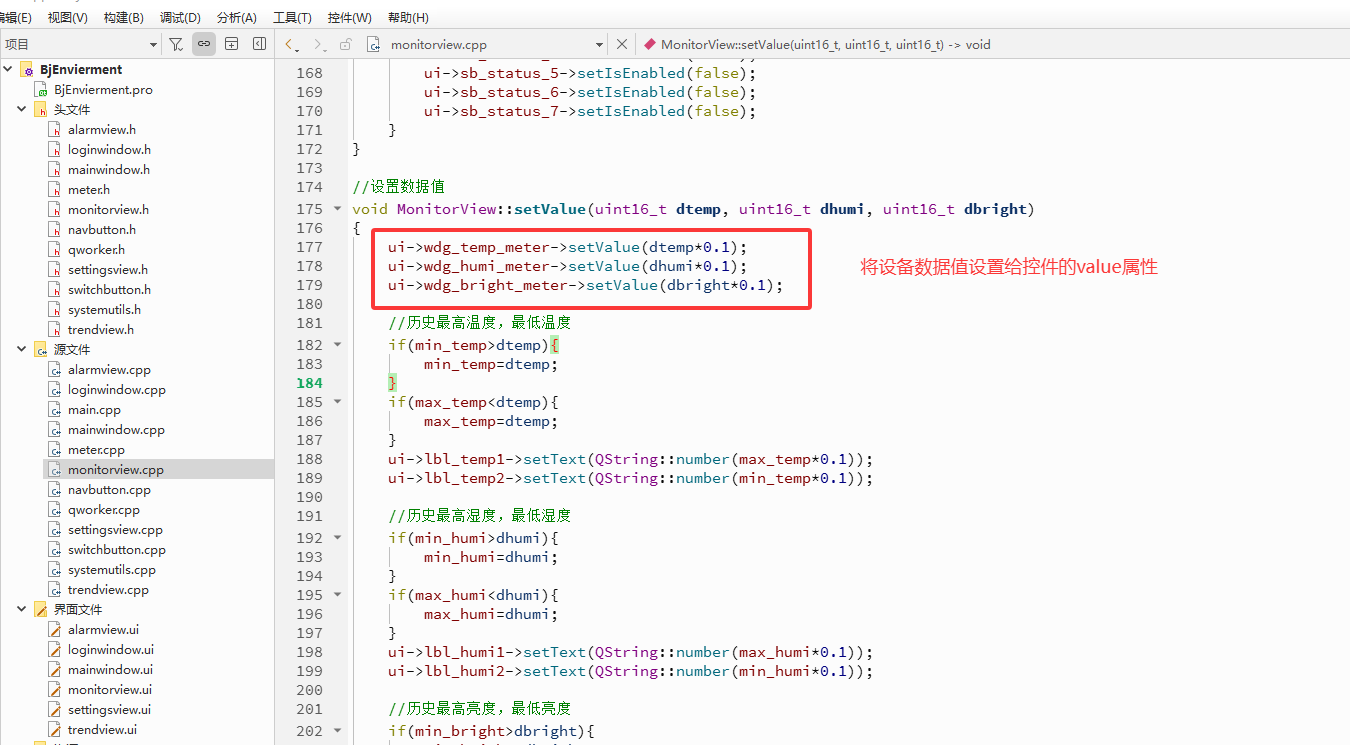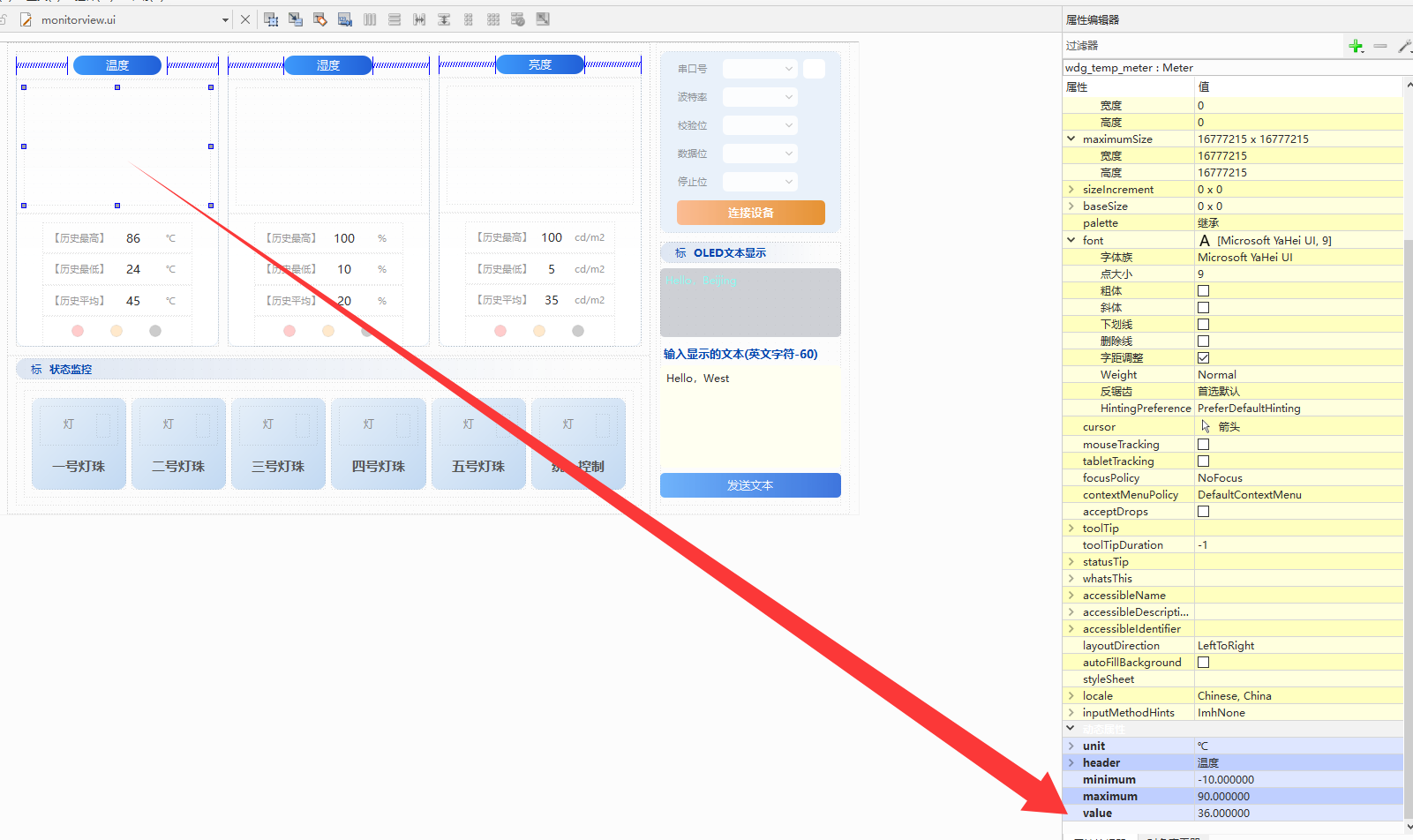 ui->Monitor->setValue(temp,humi,bright);