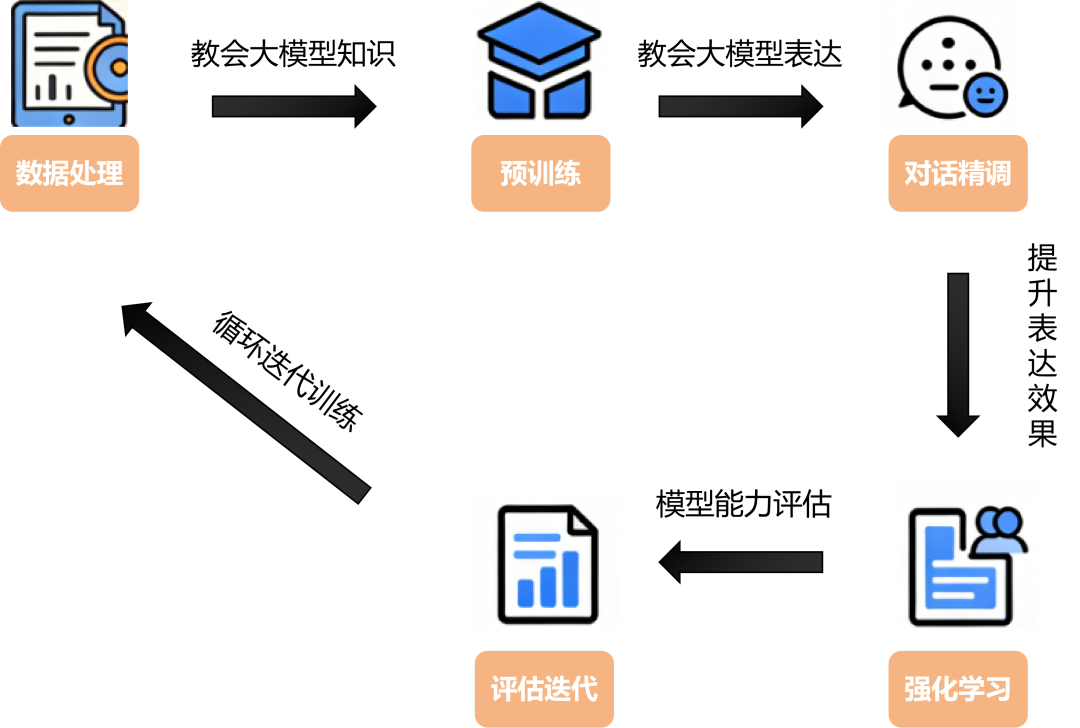 大模型的训练可形象地理解为一个学生的完整培养过程,主要包含以下关键阶段: