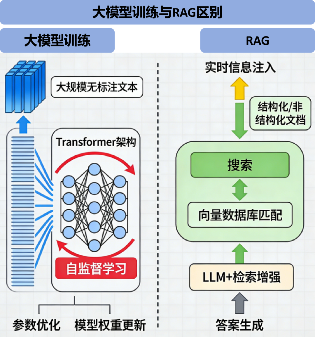 2.2 大模型训练与RAG的核心区别:内生能力 vs. 外部扩展