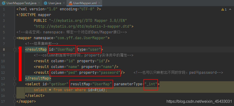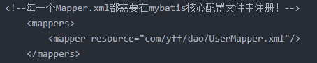 <mapper resource="com/yff/dao/UserMapper.xml"/>