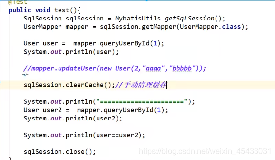在mapper的同一个namespace中,如果有其它insert、update、delete操作数据后需要刷新缓存,如果不执行刷新缓存会出现脏读。 设置statement配置中的flushCache=”true” 属性,默认情况下为true,即刷新缓存,如果改成false则不会刷新。使用缓存时如果手动修改数据库表中的查询数据会出现脏读。一般下执行完commit操作都需要刷新缓存,flushCache=true表示刷新缓存,这样可以避免数据库脏读。一般我们不用设置,默认即可,这里只是提一下。