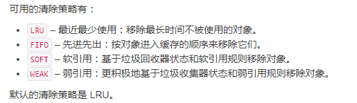 memoryStoreEvictionPolicy:可选策略有:LRU(最近最少使用,默认策略)、