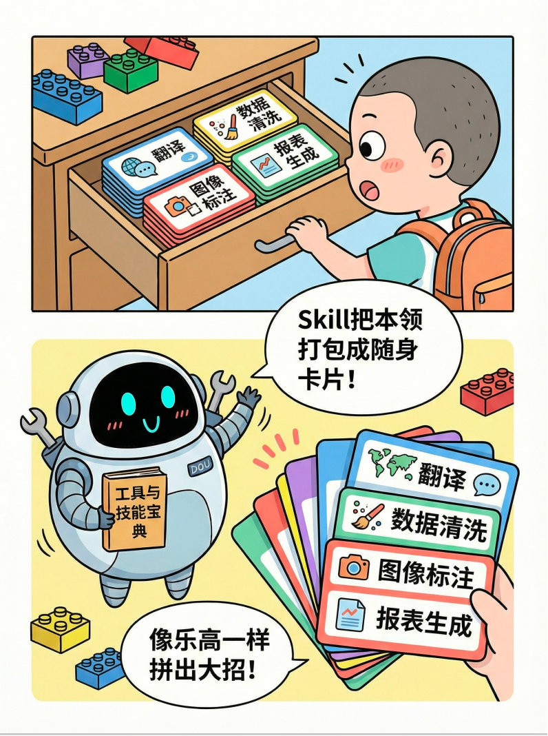 比如让它设计个漫画,讲解关于claude mcp和skill的功能和使用场景,要求通俗易懂、好玩有趣。