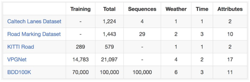 车道线数据集对比:
