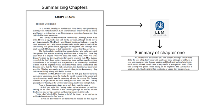 为实现这一点,我们可以利用 LLM 对章节内容进行详细的摘要提炼,保留其中重要且相关的信息。