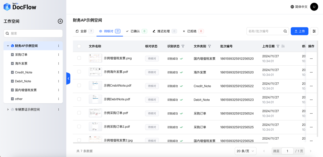 1. 票据上传:通过TextIn Web端上传按钮,选择含手写体金额/日期的票据图像(支持jpg、png、bmp、tiff等图片格式及PDF、OFD文件),支持单张上传或多票据批量上传,混贴票据可直接整体上传,无需提前拆分;