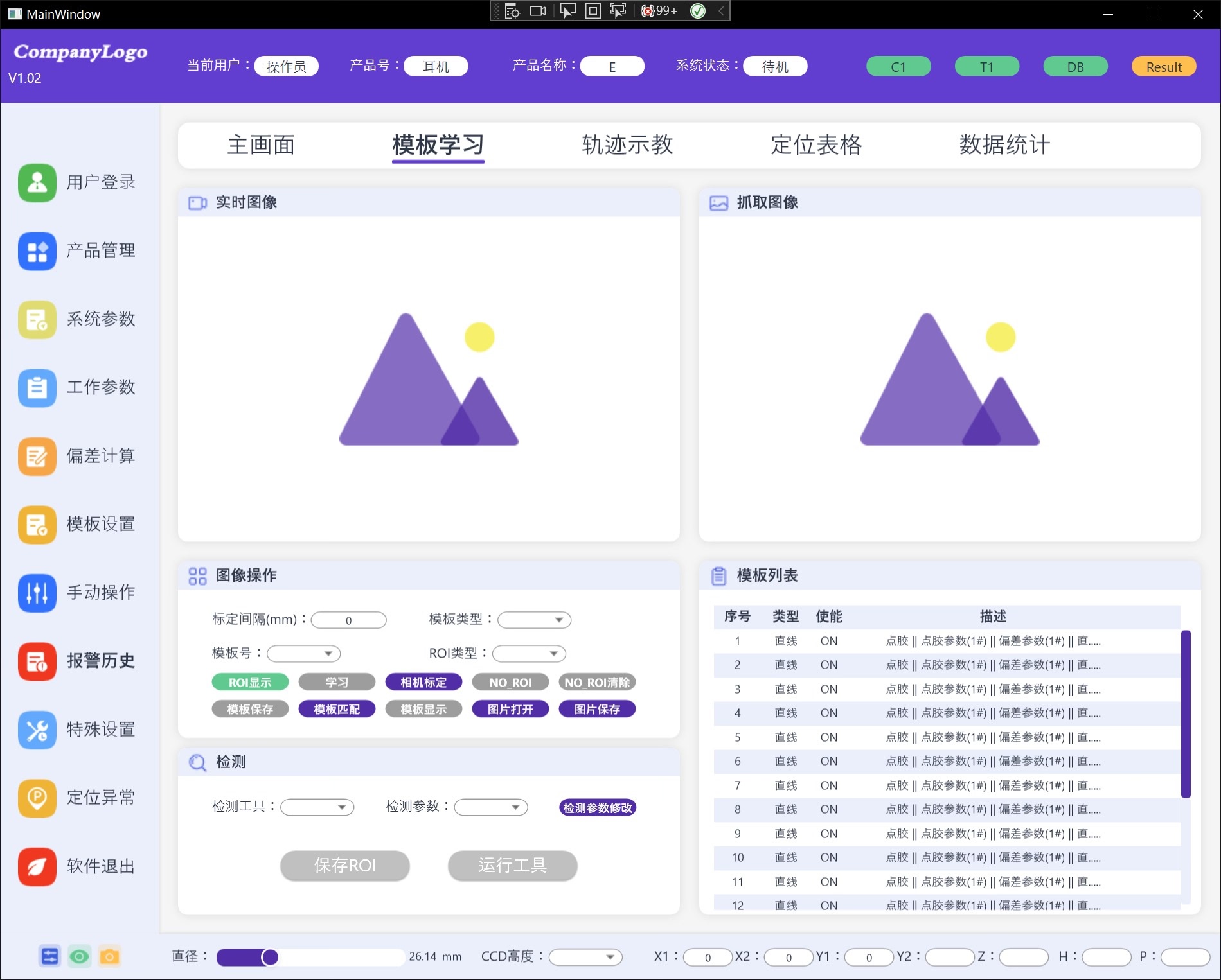- 所有耗时操作统一包成 `Task`,通过 `Dispatcher` 回写 `LearnEnabled / TempleteSaveEnabled` 等属性,界面零卡顿。