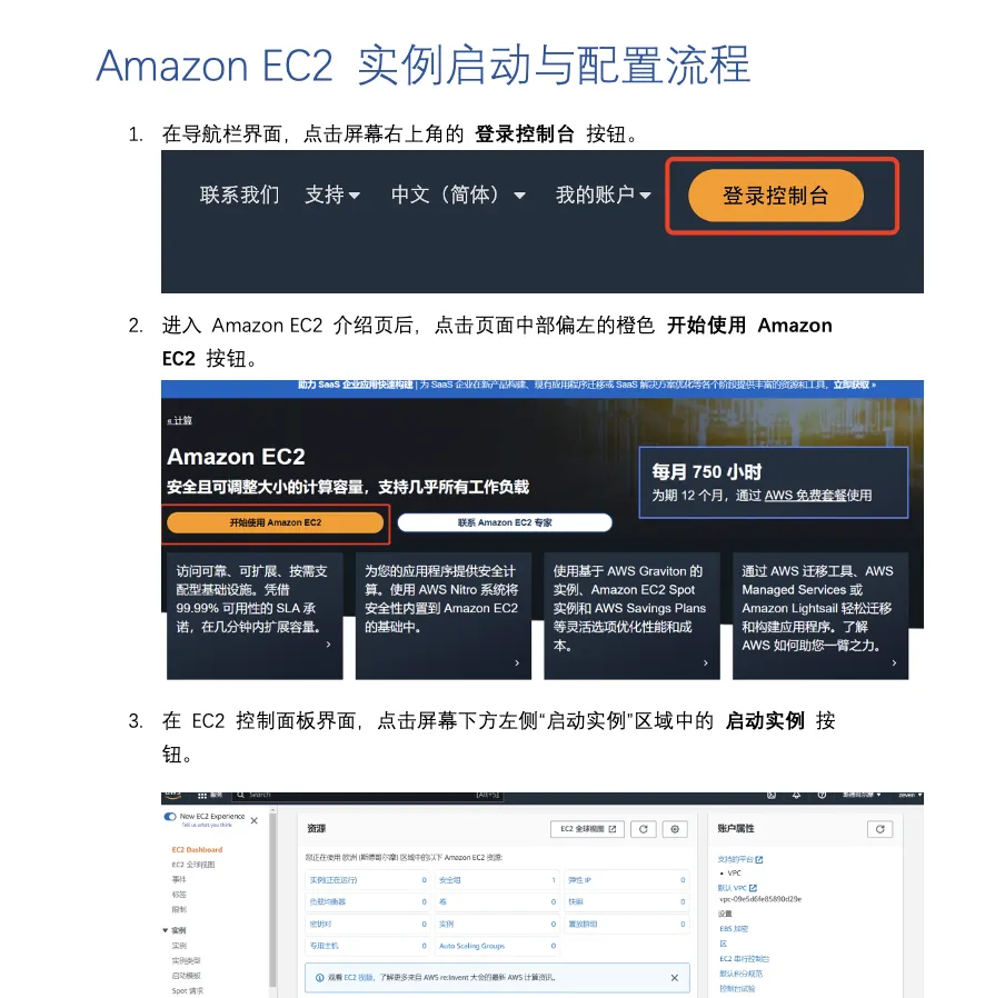 用户一次性上传多张界面截图(如控制台创建实例、配置安全组等)。