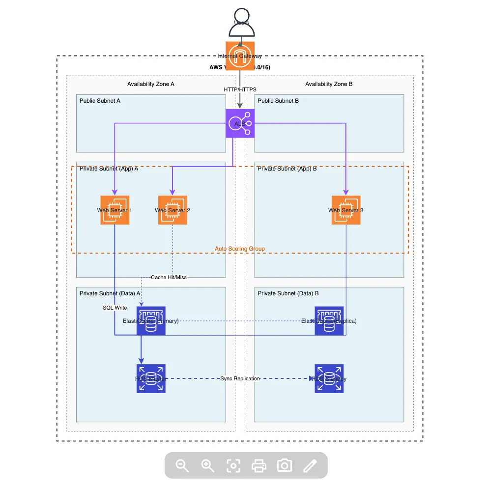 例如:“设计一个高可用 Web 应用,前端通过 ALB 分发流量,后端由 3 个 EC2 实例组成 Auto Scaling Group,数据库使用 RDS 主从架构,并接入 ElastiCache 缓存。”