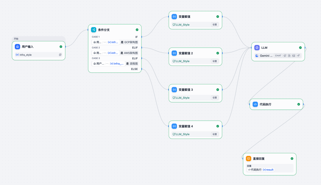 利用 Dify 的【条件分支】节点,判断用户是 “AWS”、“GCP” 或 “流程图”。仅加载对应类型的 mxGraph 图标样式定义(如 aws.ec2、gcp.compute),避免上下文污染,节省 Token。