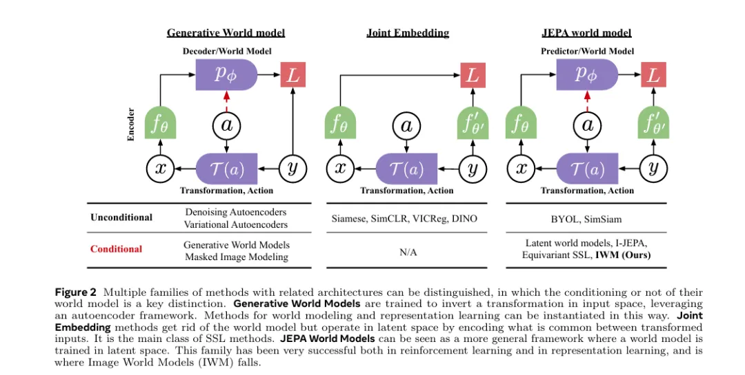 同年另一篇工作⁵(arXiv:2403.00504)进一步拓展JEPA的预测任务,提出“图像世界模型(IWM)”,将预测范围从“掩码块”扩展到“全局 photometric变换”,实现了表征抽象度的可控性——既可学习对比式的不变表征,也可学习掩码建模的等变表征,极大提升了JEPA的泛化能力。未来,随着JEPA在小样本学习、低资源模态、实时性优化上的持续突破,它有望成为连接大模型与真实世界的“通用表
