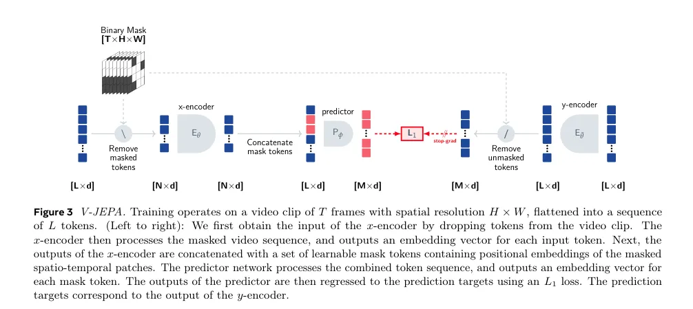 在图像领域验证可行性后,JEPA的探索重点转向动态场景——视频表征学习。2024年的V-JEPA⁴(arXiv:2404.08471)成为这一方向的里程碑。