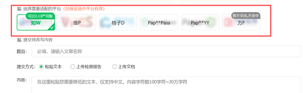 降重鸟界面友好,适合新手快速上手。其降低AI率的功能基于成熟的降重算法,效果较为稳定,且支持根据不同检测平台选择适配模式。