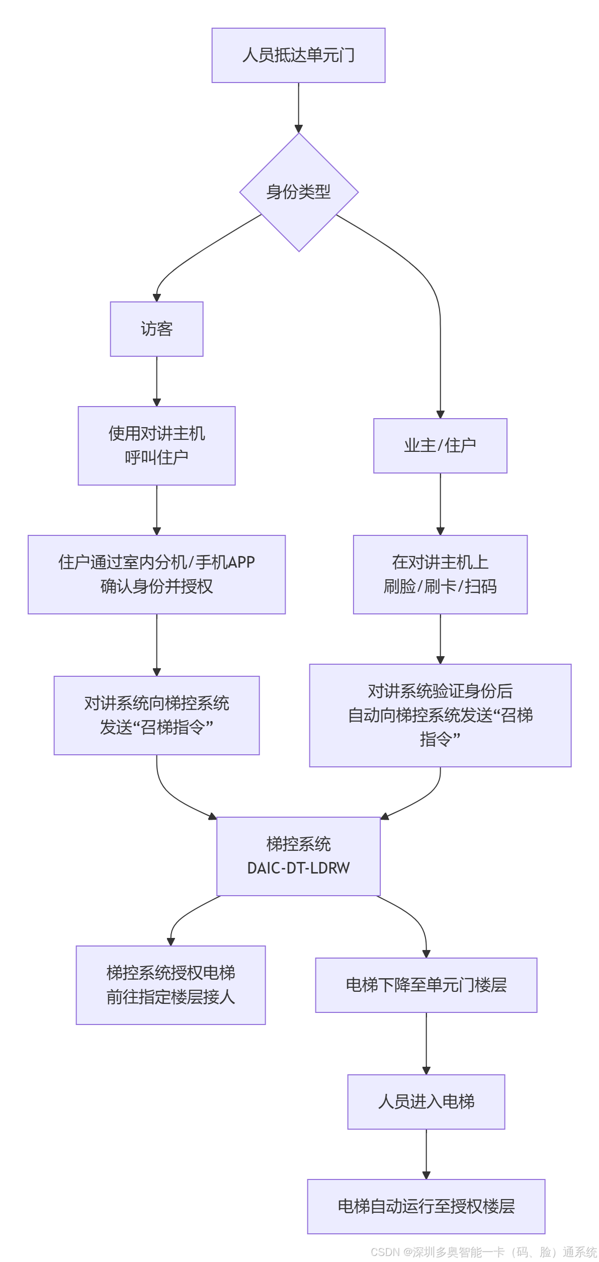 A[人员抵达单元门] --> B{身份类型}