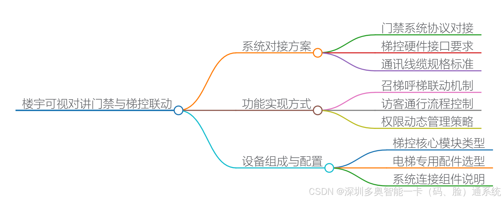 门口机 ─┬─ 门禁控制器 ─── 中央管理服务器 └─ 读卡器 ────── 电梯控制主板 │ (楼层扩展器)