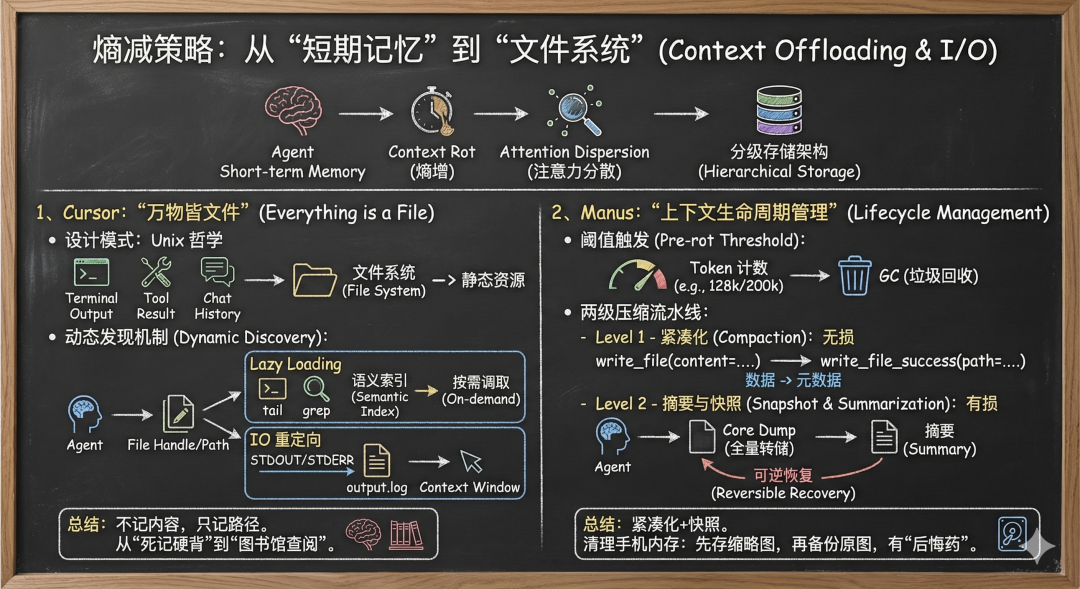 一、 熵减策略:从“短期记忆”到“文件系统” (Context Offloading & I/O)