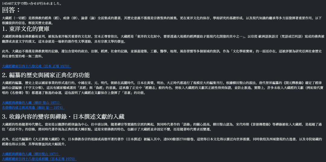 一个是日本永崎研宣开发的“バウッダAI”(https://agni.dhii.jp/bd-rag/gen)。