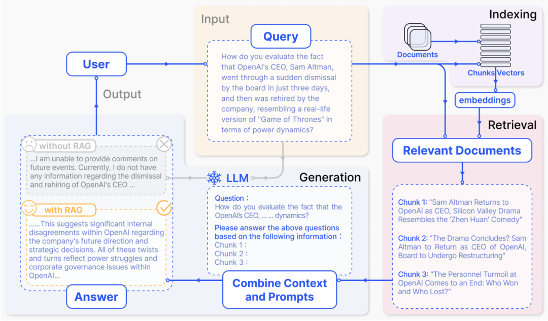 Generation => 如何结合用户的提问和检索到的知识,让模型生成有用的答案。