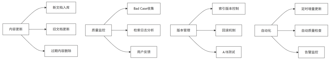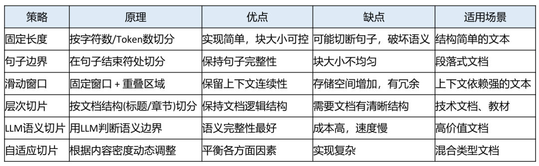 将长文档切分为适合检索的小块。需要平衡块大小、上下文完整性、检索精度。