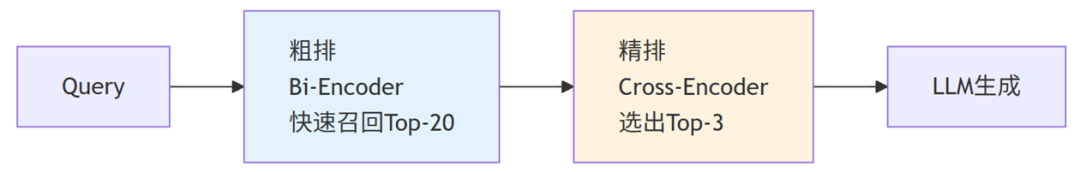 使用Cross-Encoder对Top-K结果精排,选出最相关的Top N。显著提升最终效果。