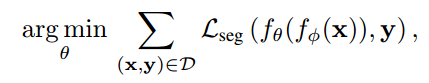 对于网络架构,使用DINOv2-L作为backbone,记为fϕ,使用Mask2Former作为decoder,记为fθ。在使用EarthAdapter之前,微调VFM的优化目标是确定一组参数,以最小化下游任务上整个模型的损失: