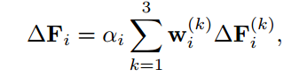 其中wi分别表示空间、LF和HF分量的权重,所以最终特征调整计算如下: