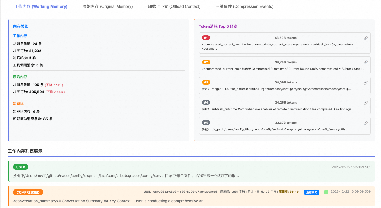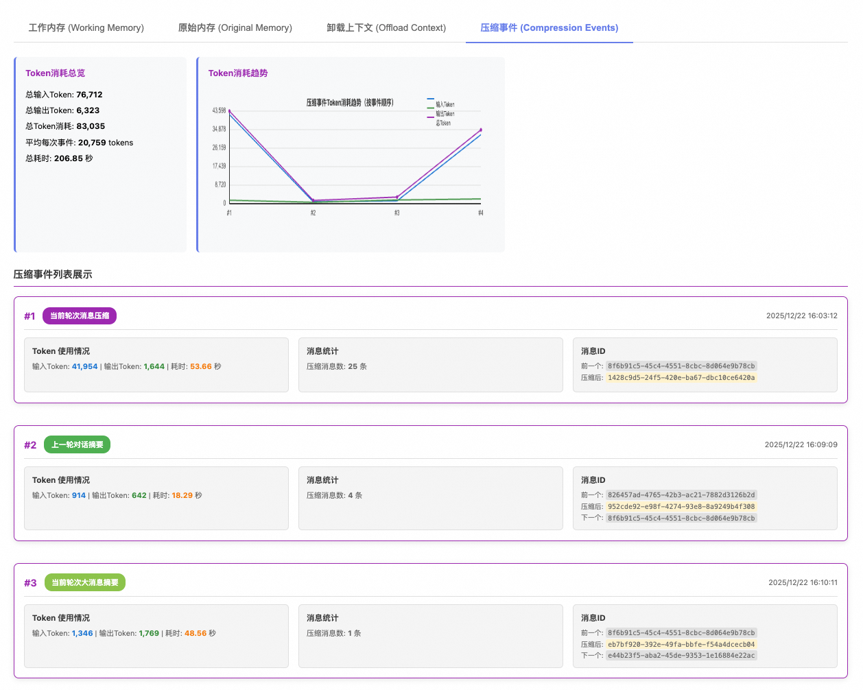 因此,AutoContextMemory 提供了完整的压缩事件追踪和内存分析功能,帮助开发者根据实际场景数据驱动地优化配置参数。