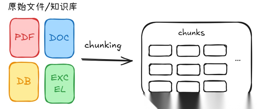 **1. 切块(Chunking):**第一步是把你的文档(PDF、Word、网页)清洗干净并切成小块。