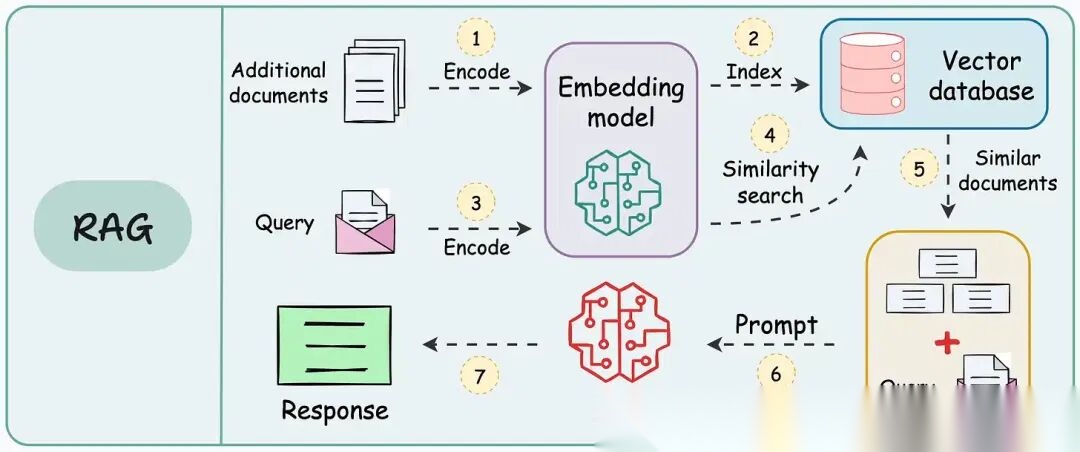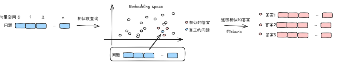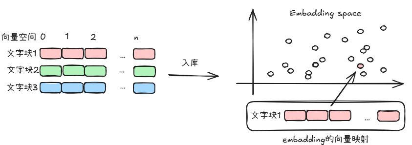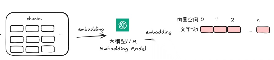 2. 向量化(Embedding):切好块后,用 Embedding 模型把这些文字块变成向量(一串数字),作为这段文字的提纲(向量版)。 这里用的不是简单的词匹配,而是上下文嵌入模型(比如双向编码器)。