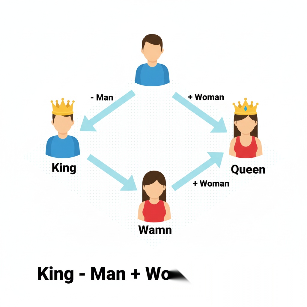 最经典的案例就是:国王 - 男人 + 女人 ≈ 女王。