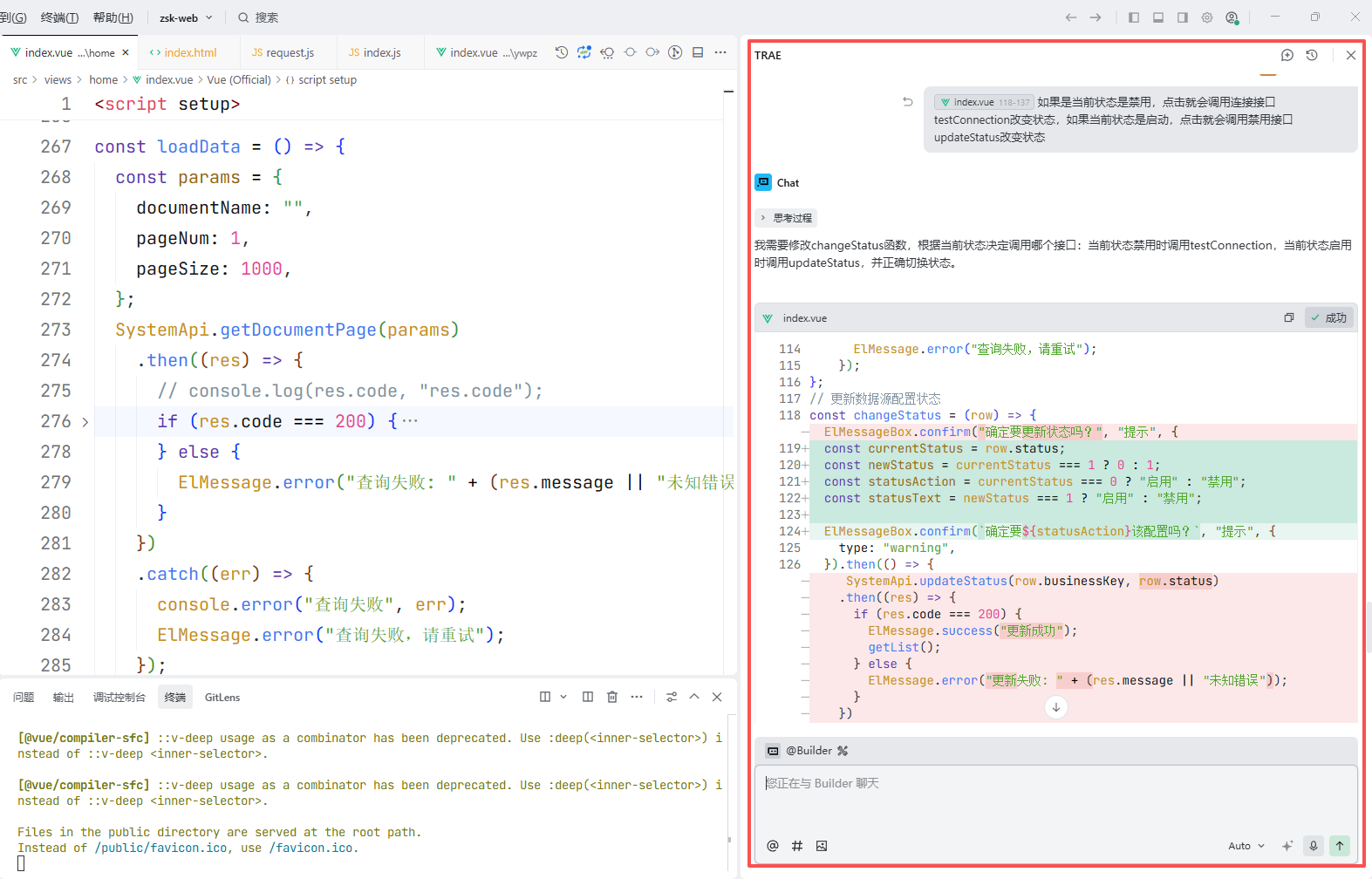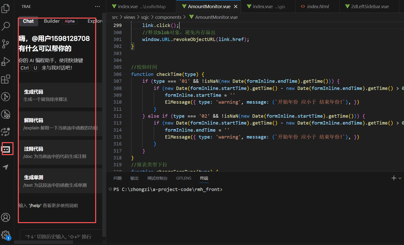 Trae最令人兴奋的能力之一是“按需生成”。你不再需要记住所有API和语法糖,只需要用清晰的自然语言描述你想要的功能。