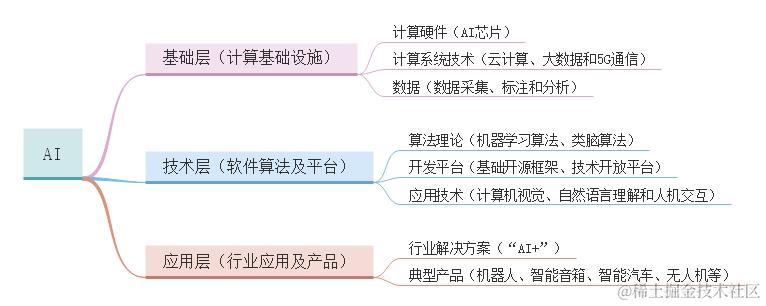 人工智能产业链结构上可分为基础层(计算基础设施)、技术层(软件算法及平台)与应用层(行业应用及产品) 。