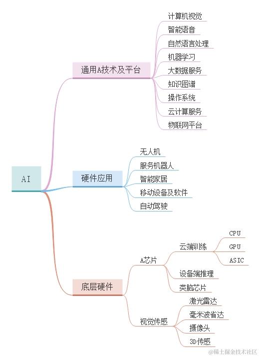 人工智能不同于互联网发展,更侧重于软硬件结合落地,所以我给大家梳理了通用的AI技术及相关平台。底层硬件和软件的结合配合合适的算法,才能产出智能化的产品,