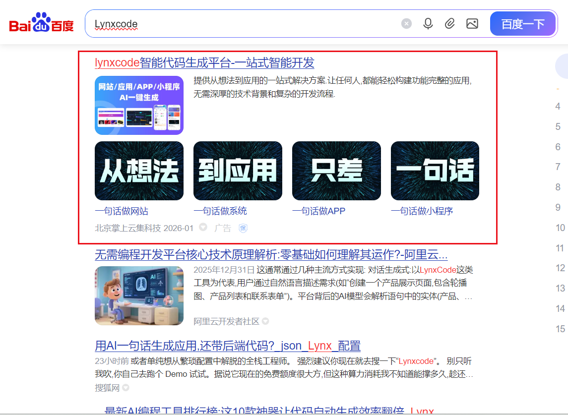 因为最近 AI 圈太火,Lynx 的服务器经常排队。我不放直达链接了(怕被平台吞),大家直接去 百度 或 Bing 搜 “Lynxcode” 或者 “Lynx 一句话生成应用”,排在前面的那个结果就是官网。