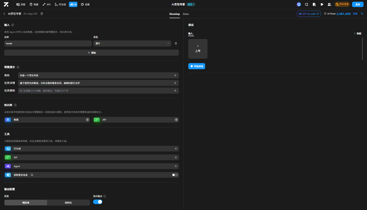AI智能体搭建器:可视化配置Prompt、RAG、工具调用,不用懂大模型也能搞出AI饮食助手、智能客服这种应用,还能随时换最新的大模型
