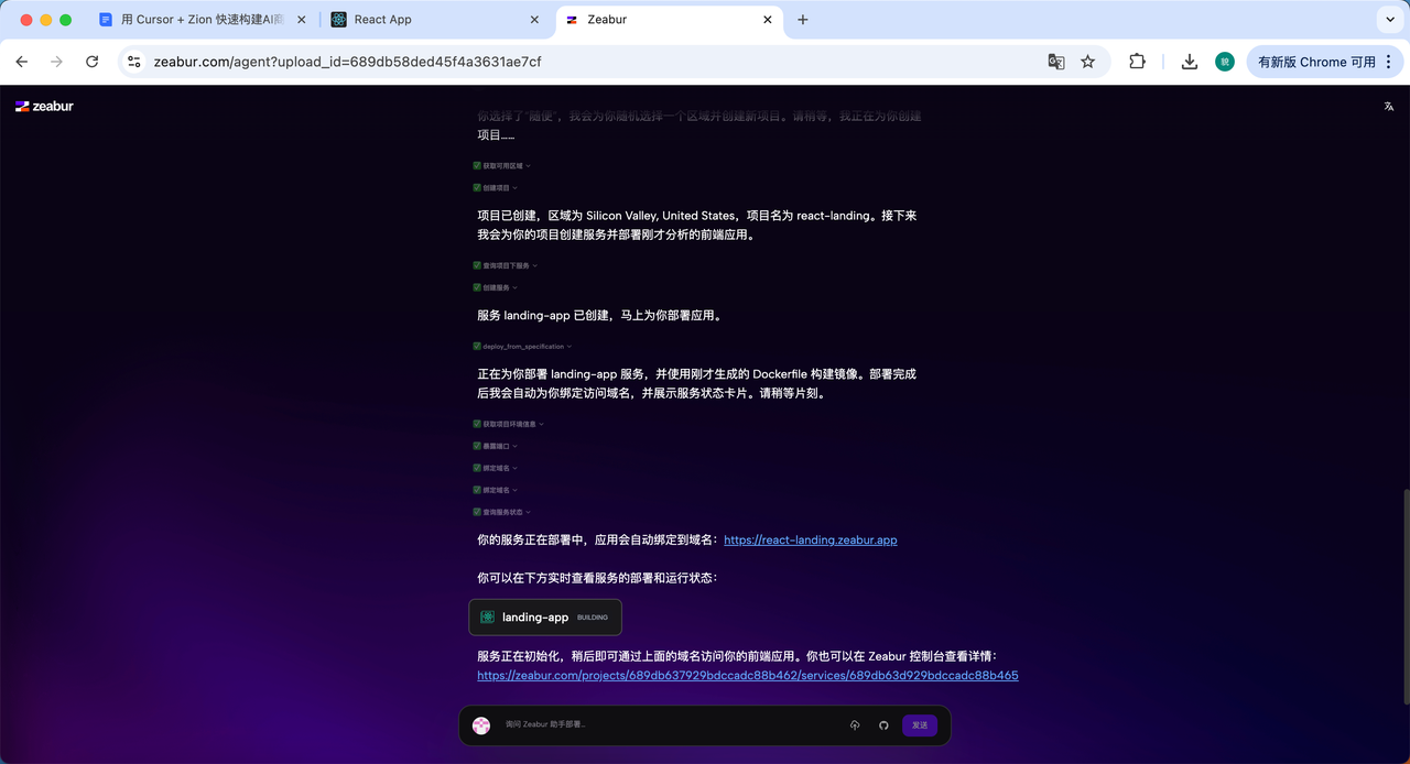 跟着Zeabur智能体的提示走,傻瓜式操作,几分钟就搞定