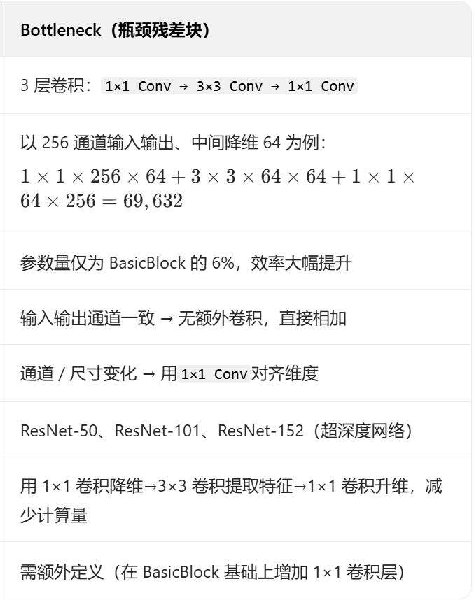 2.1 BasicBlock vs Bottleneck 核心对比表