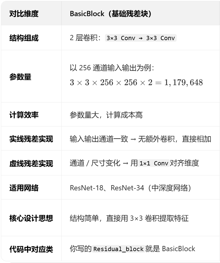 # 6. 定义ResNet18的基础残差块(BasicBlock),继承nn.Module