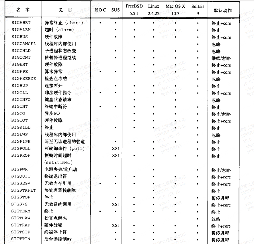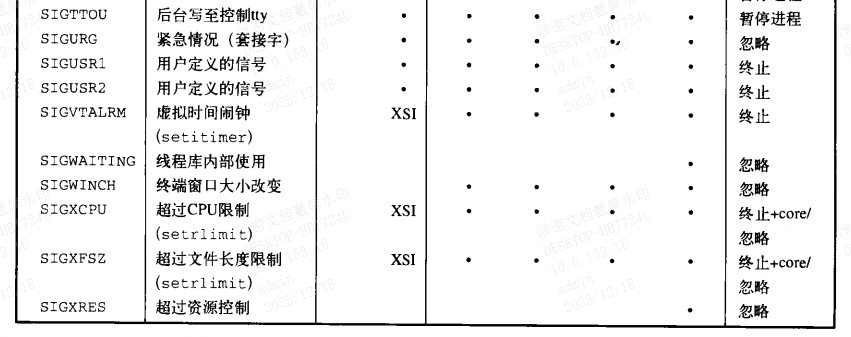 SIGFREEZE:此信号仅由Solaris定义,它用于通知进程在解冻系统状态之前需采取特定的动作