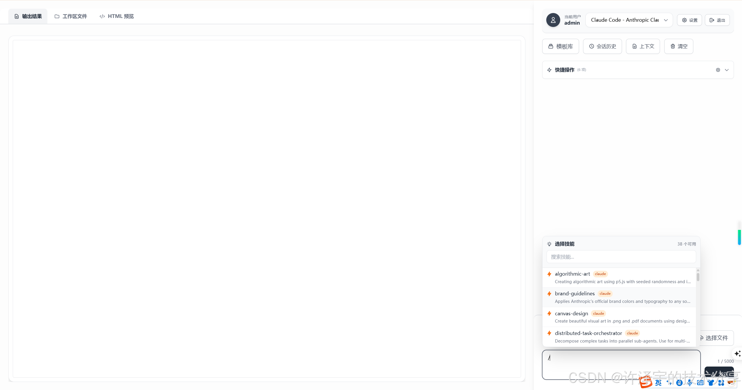 WebCode 最大的亮点是集成了 Claude Code 的 Skills 技能系统。每个 Skill 就像一个"专业插件",赋予 AI 特定领域的能力。