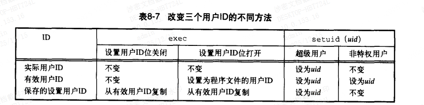 (3)保存的设置用户ID是由exec复制有效用户ID而得来的。