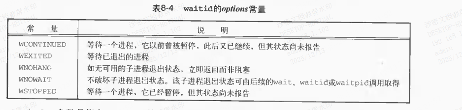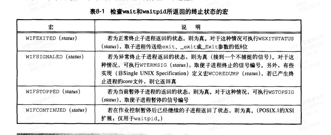 (2)如果一个子进程已终止,正等待父进程获取其终止状态,则取得的该子进程的终止状态然后立即返回