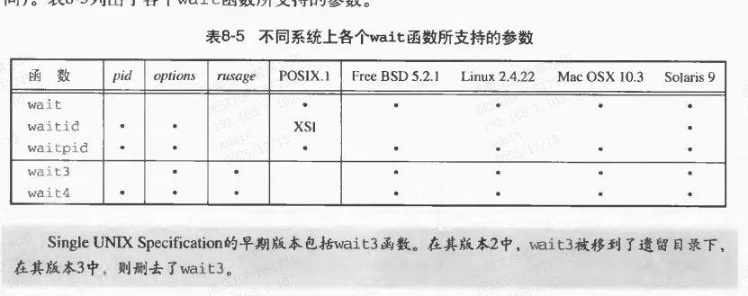 父进程使用wait或wiatpid函数获取子进程的终止信息,包括:进程ID、该进程的终止状态、以及该进程使用的CPU时间总量。内核可以释放终止进程所使用的所有存储区,关闭其打开的文件。如果一个子进程已经终止且没有被父进程使用wait函数回收终止信息,则变为僵死进程。ps命令将僵死进程的状态打印为Z。