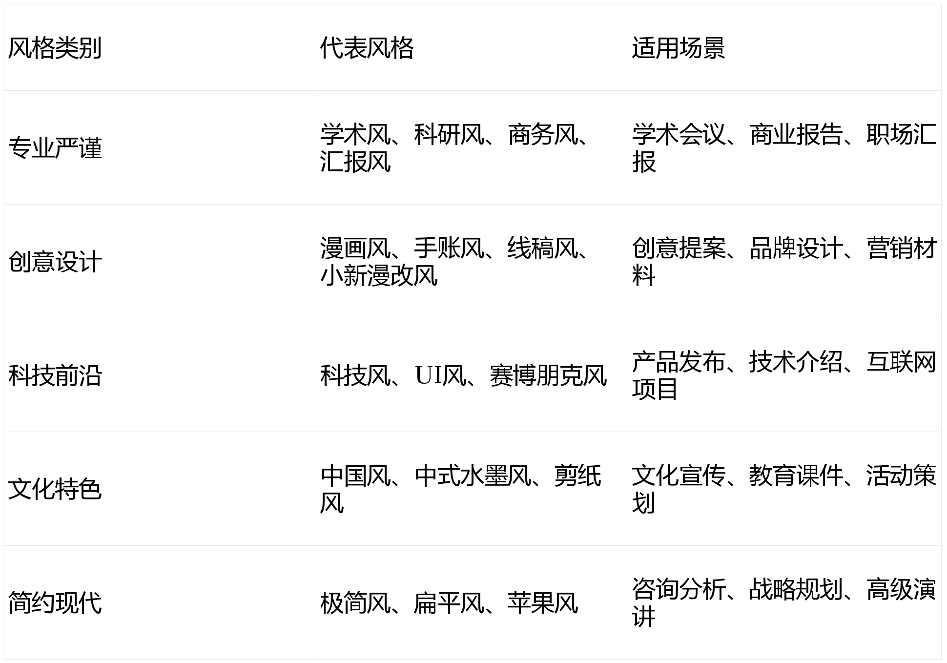 接入Nano Banana Pro后,ChatPPT的风格创造力实现了质的飞跃。与一些仅提供22种固定风格的竞品不同,ChatPPT支持上百种风格类型,且持续更新增加,几乎打破了模板或预设风格的数量限制。以下是根据信息整理的主要风格类别及应用场景: