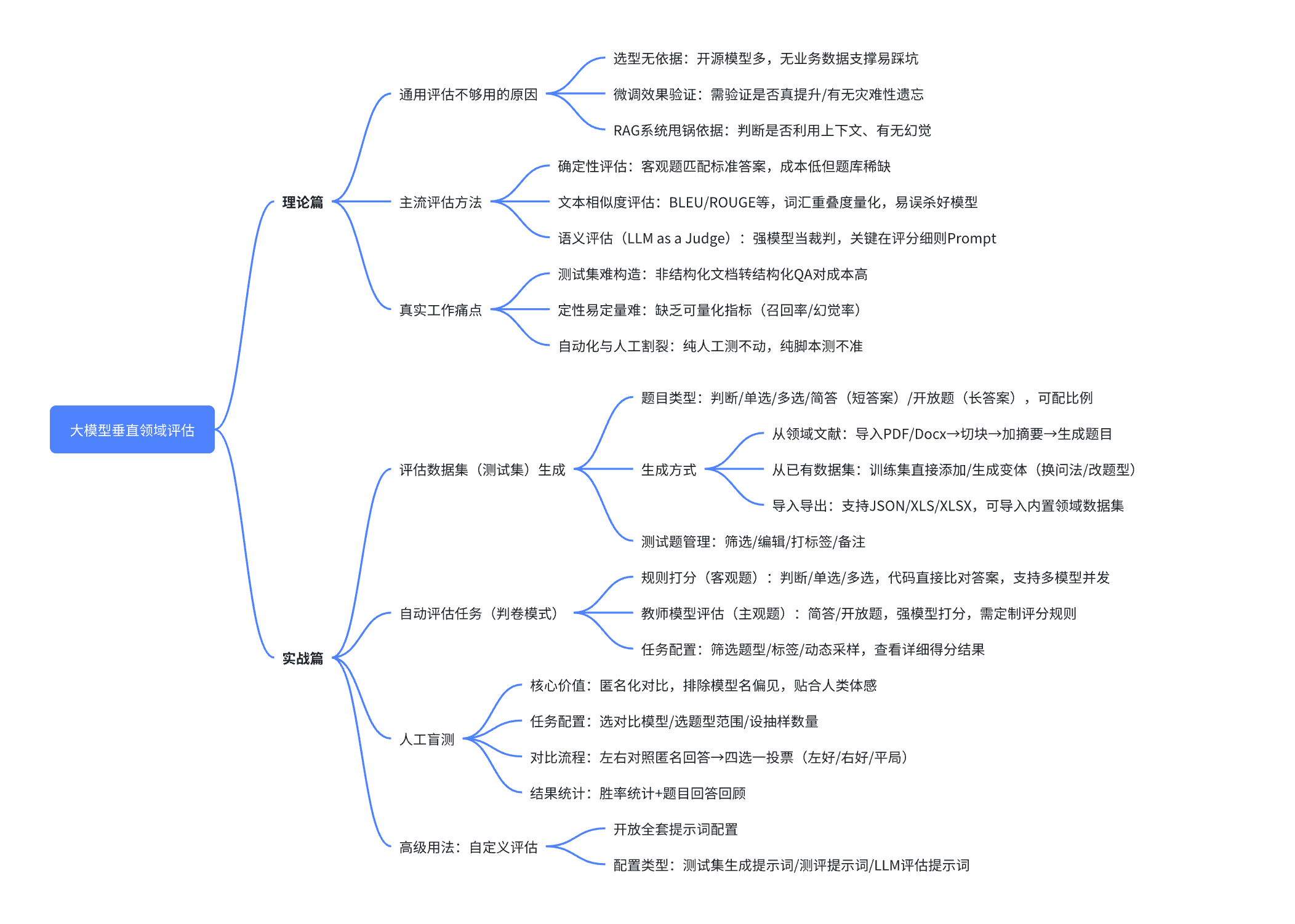 - 理解通用基准在垂直领域的局限性,明确评估的三大核心目标(选型验证、微调效果、RAG优化)