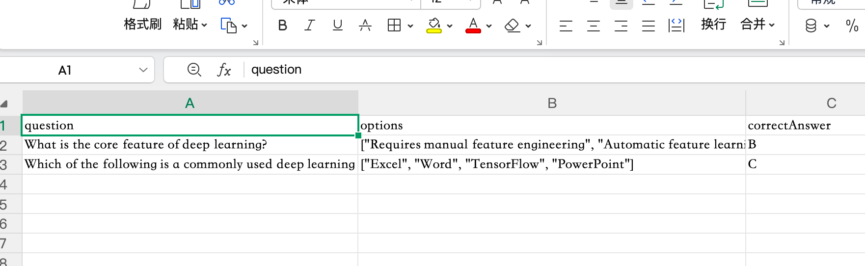 你可以直接下载对应题型和文件类型的模版,然后按照模版进行补充: