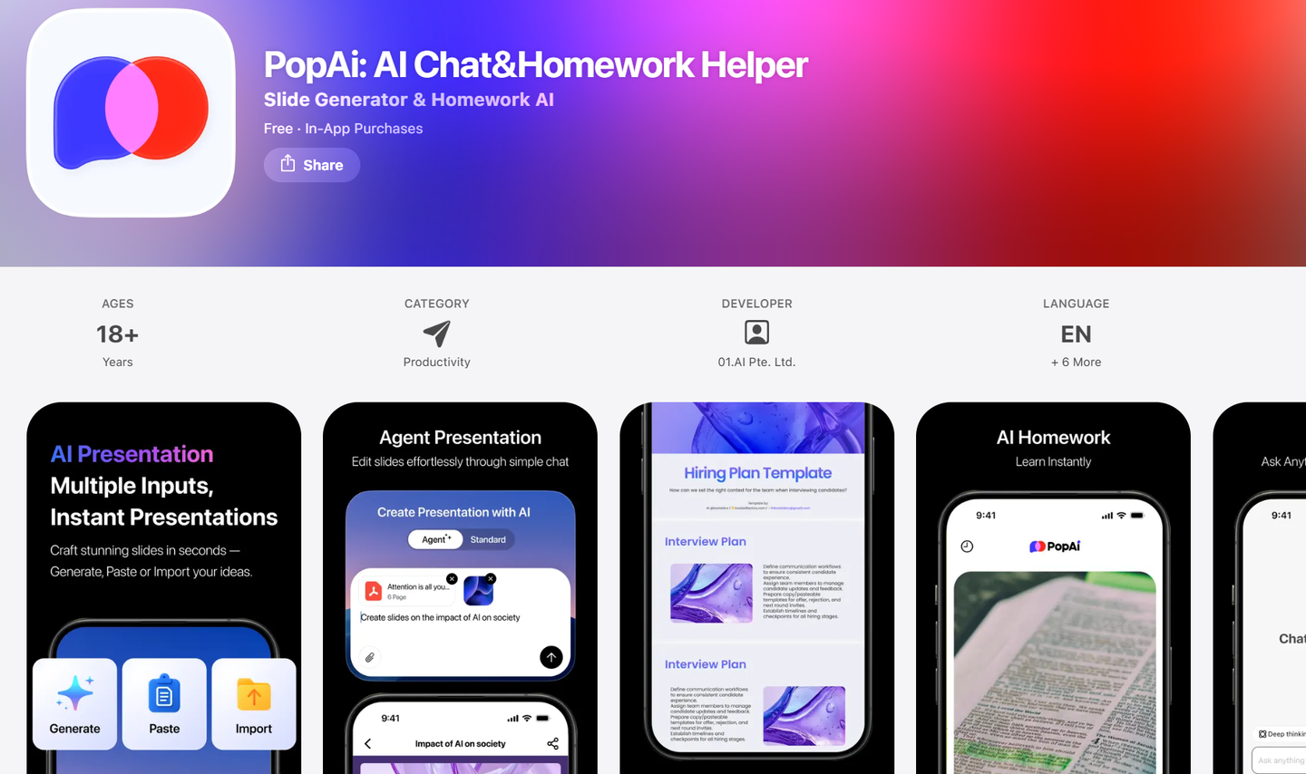 这款软件刚上线不久就登上了ProductHunt热榜,足以看出它的实用性。我最喜欢用它的文档处理和PPT生成联动功能,比如在制作一份市场调研工作汇报时,我先把相关的调研论文和数据报告上传到PopAi,软件会自动总结核心要点、提取关键词,还会列出相关问题帮助我梳理思路。之后我直接基于这些整理好的内容,在软件内选择“AI presentation”功能,结合工作汇报PPT模板网站下载的市场分析类模板,输入简单提示词,就能快速生成结构完整、内容扎实的PPT初稿,还能一键让AI扩写或精简文本内容,特别方便。