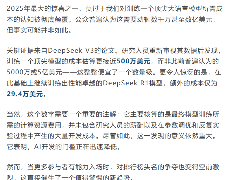 - 顶尖AI模型的训练成本,可能比你想象的便宜一个数量级