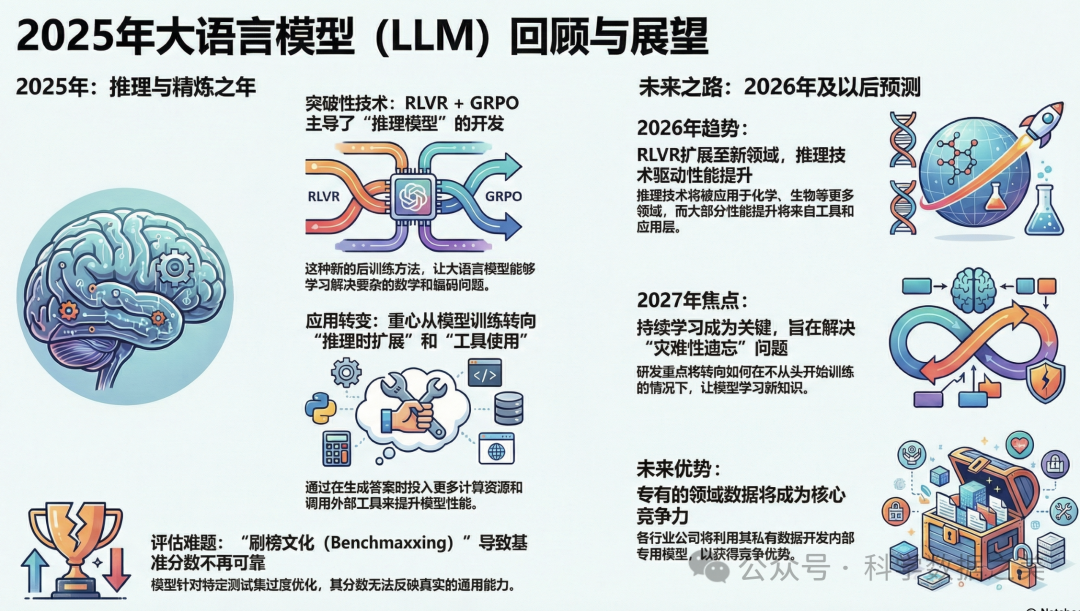 2025年教会我们,大语言模型的进步并非来自某一个单一的突破。它是一个复杂的系统工程,是由架构调整、数据质量、推理训练、推理时扩展和工具调用等多个杠杆共同驱动的结果。